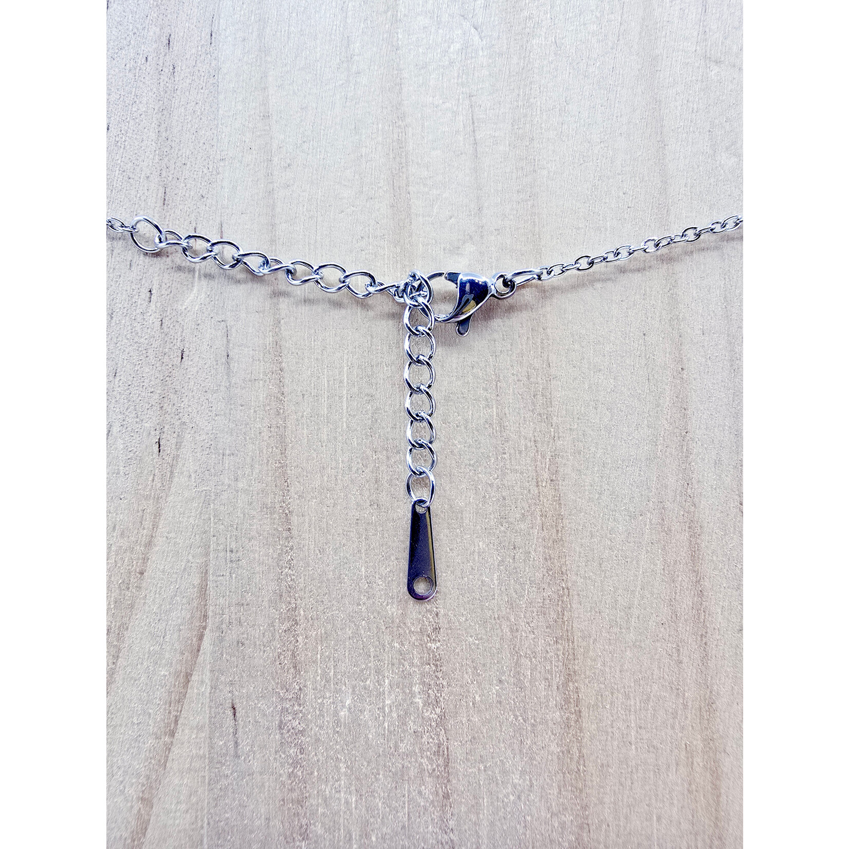 - Dimension = box : H : 10 cm - LO/LA : 9 cm / pendentif : LO : 3.2 cm - LA : 2 cm / chaîne : LO : 45-50 cm