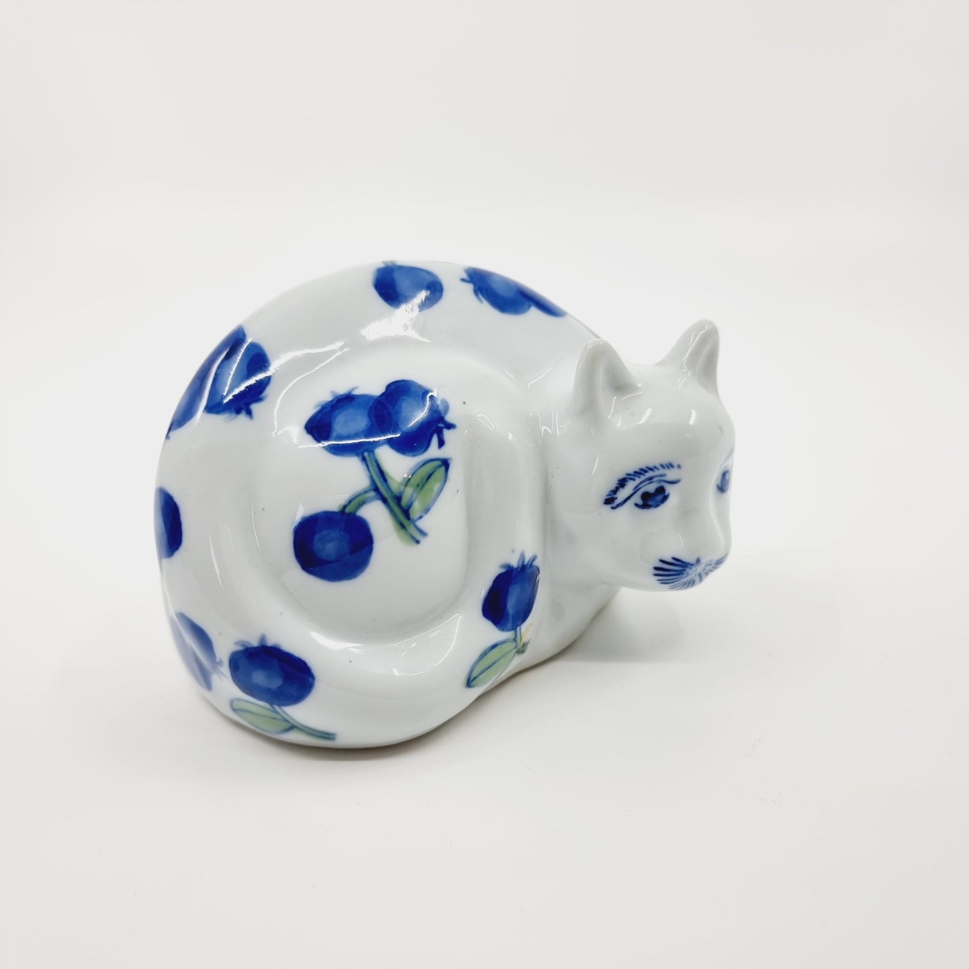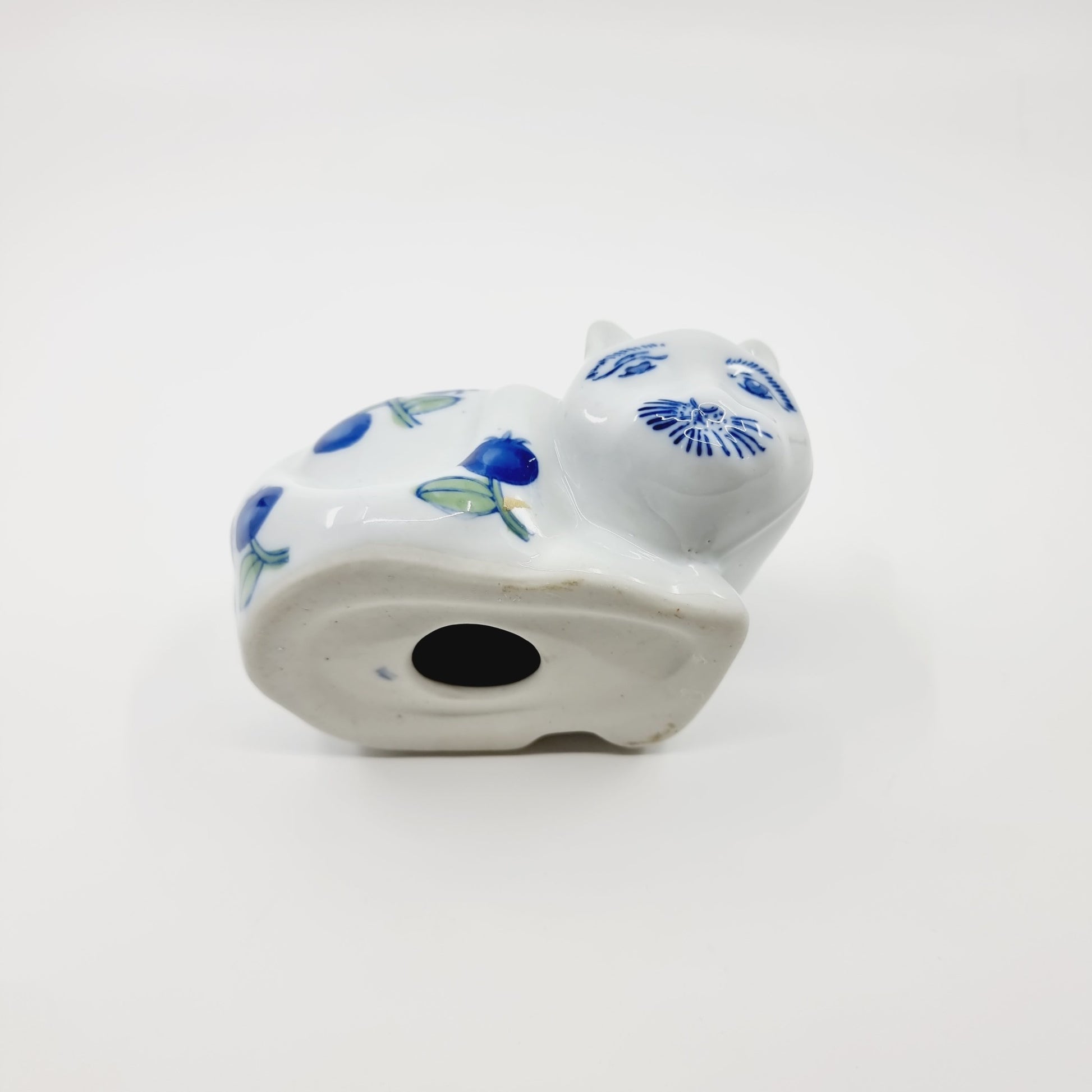 Chat en porcelaine aux fleurs bleues (Modèle n°15)