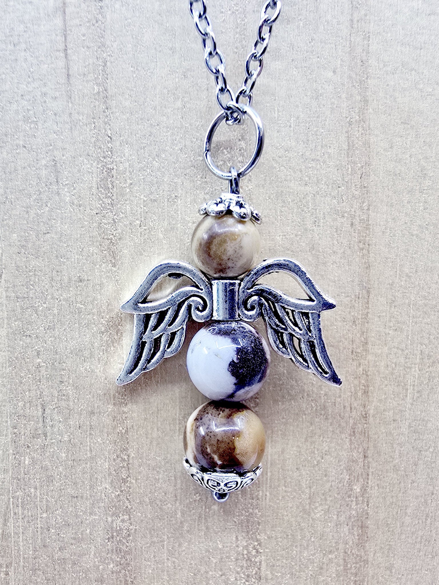 Collier ange porte-bonheur - Jaspe zèbre brun