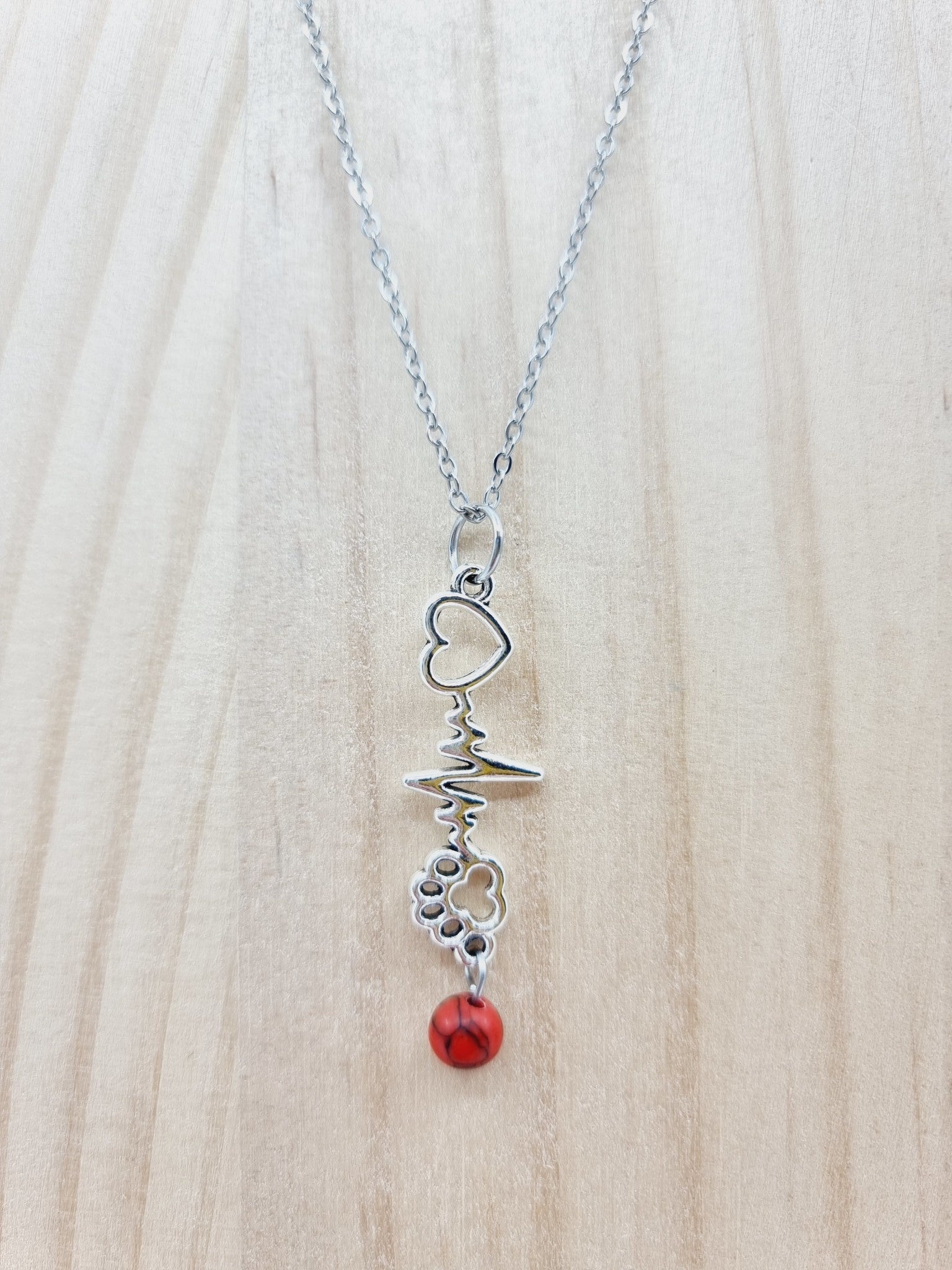 Collier battement de coeur - Howlite rouge