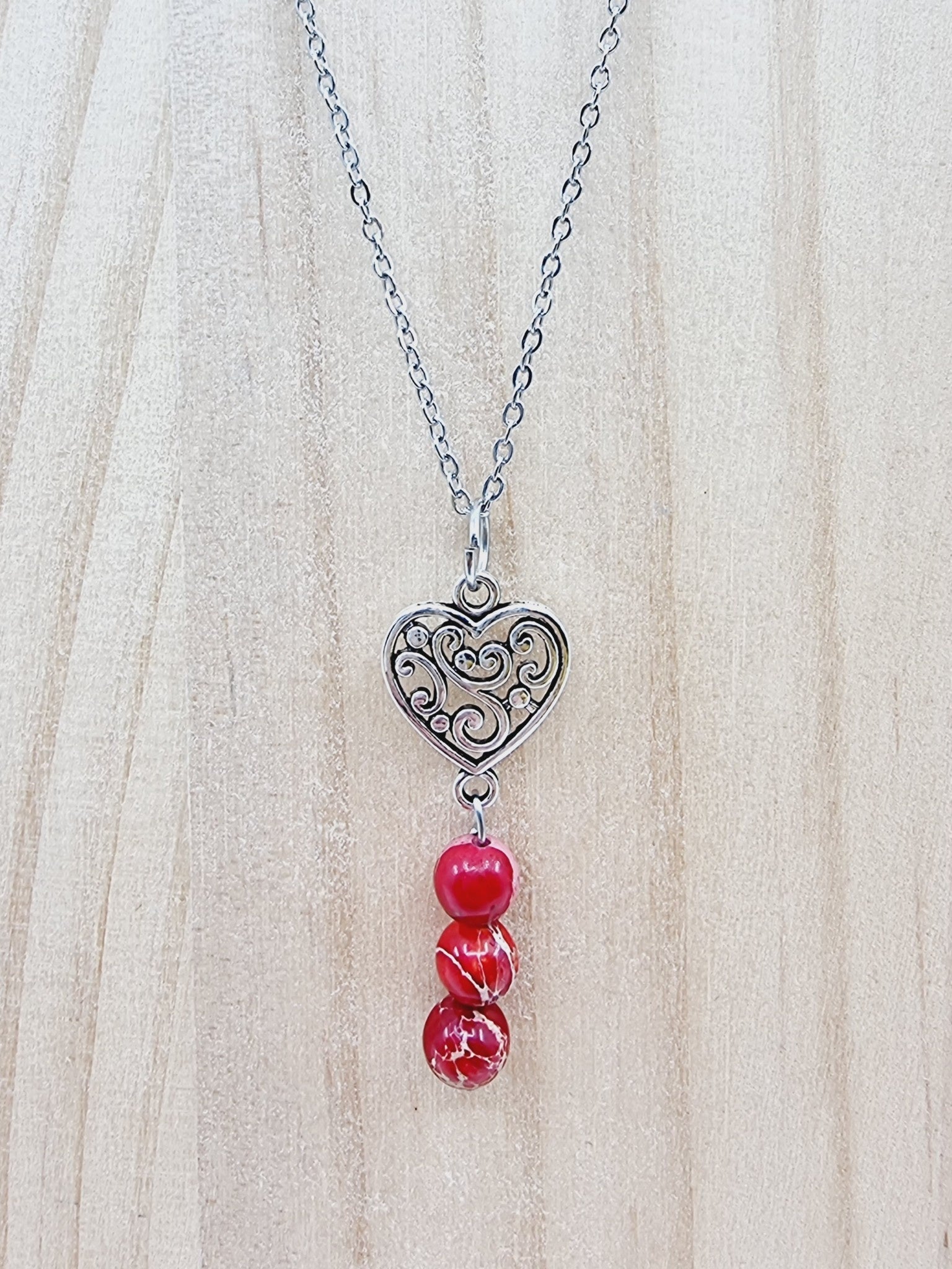 Collier coeur à fioriture - Jaspe impérial