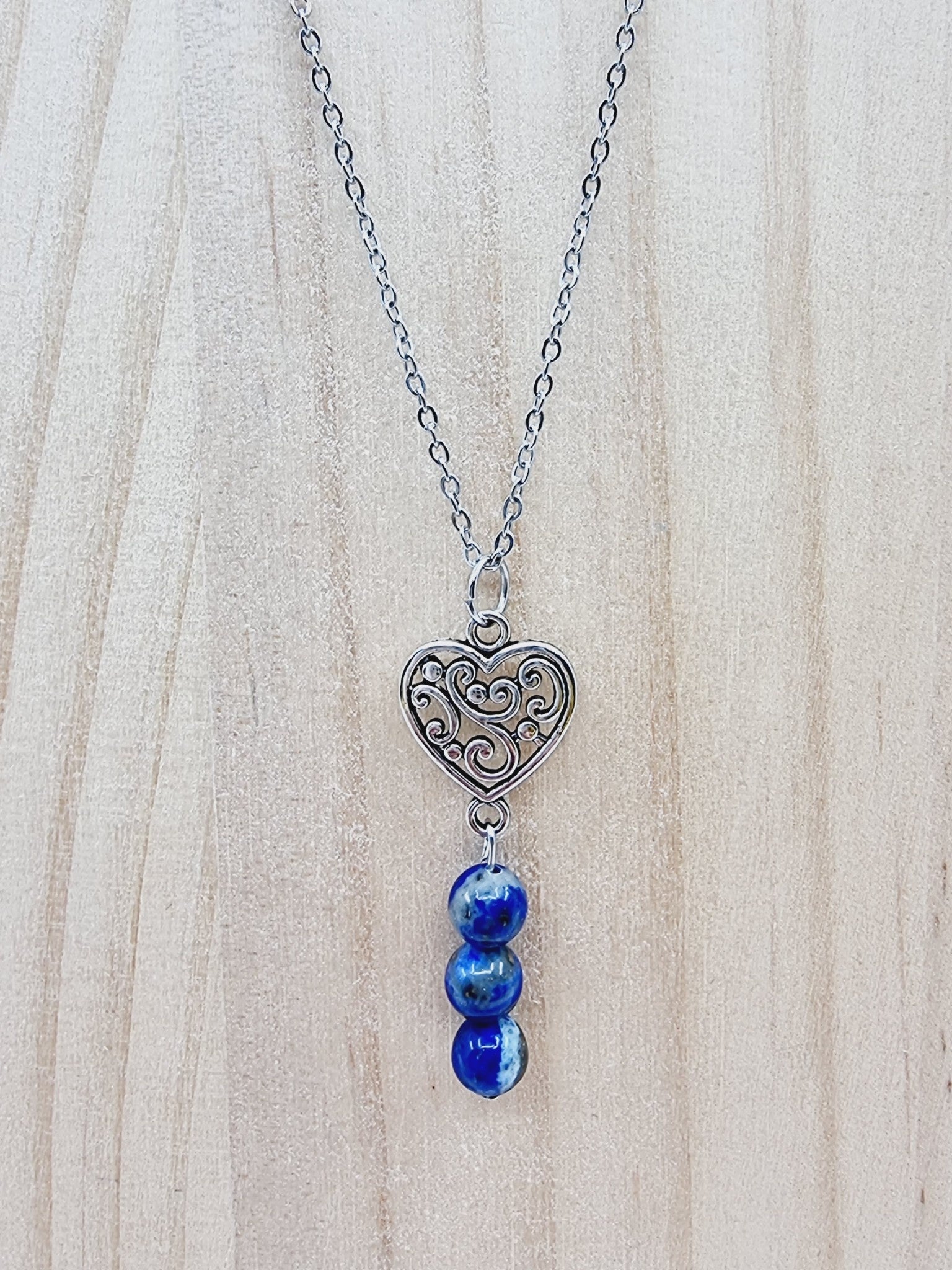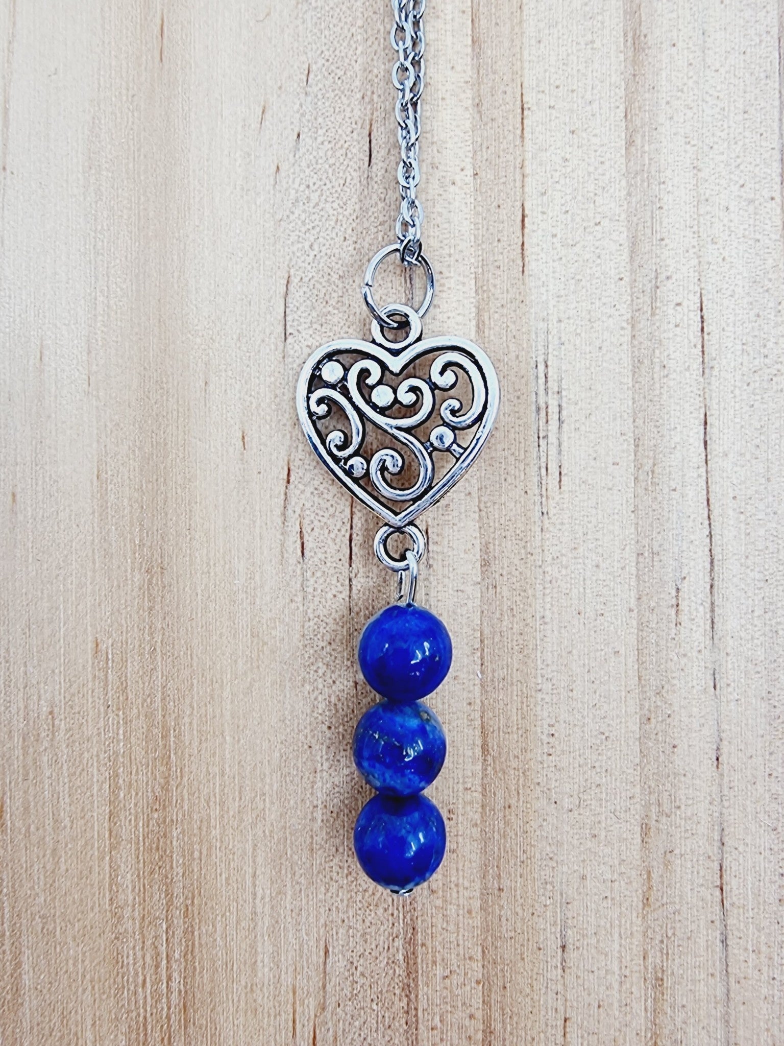 Collier coeur à fioriture - Lapis-lazuli avec calcite