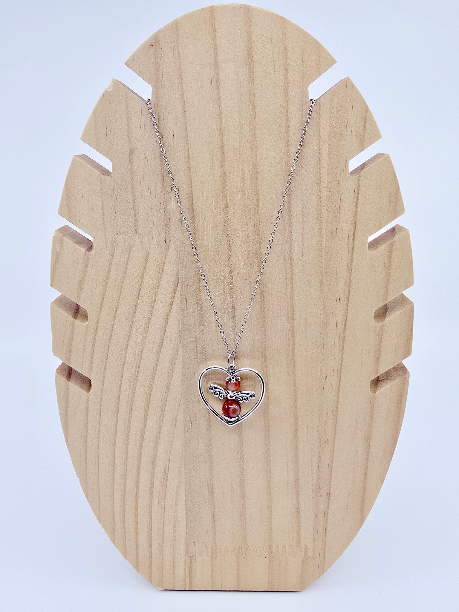 Collier coeur ange porte-bonheur - Cornaline