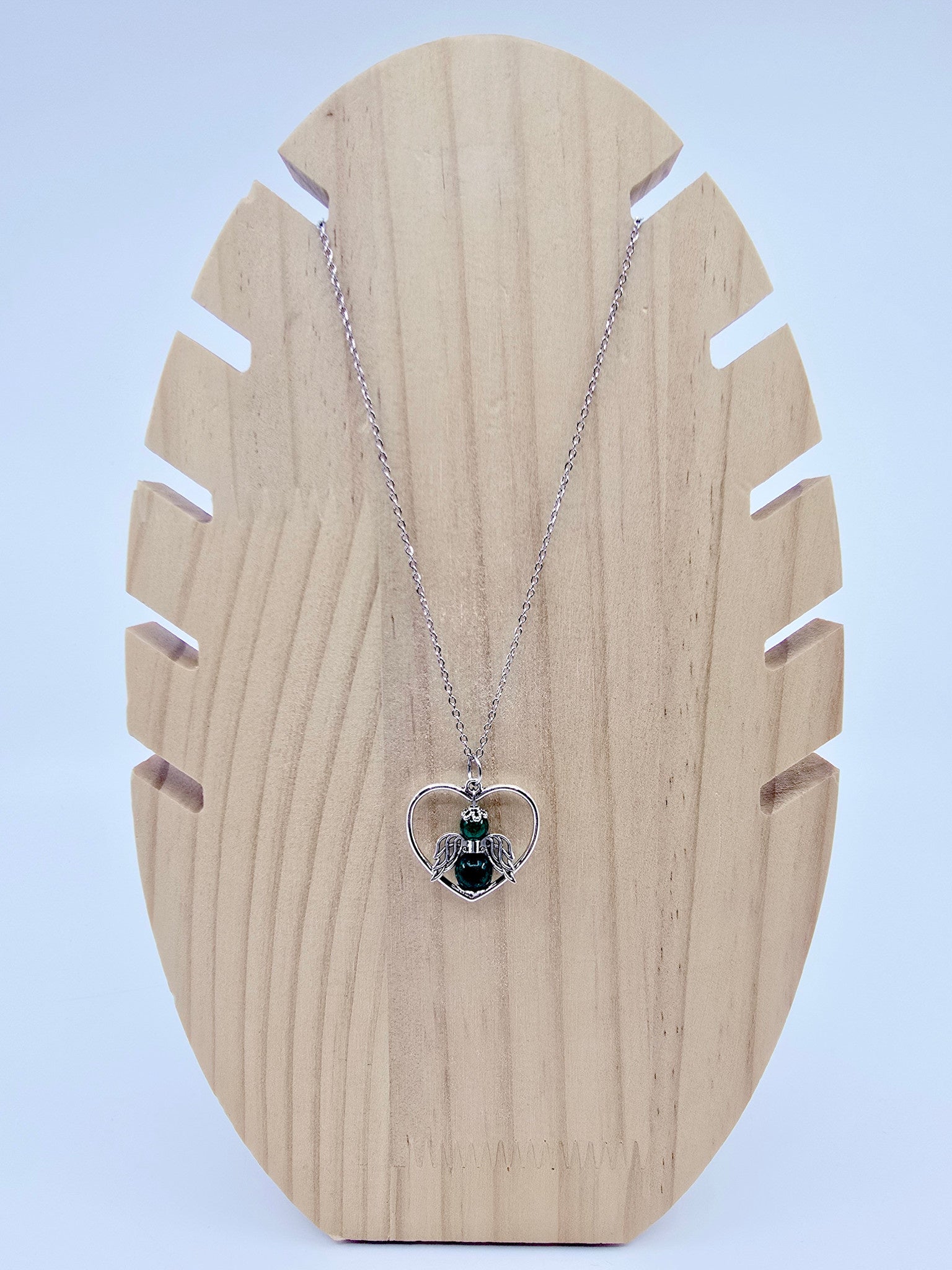 Collier coeur ange porte-bonheur - Jade vert