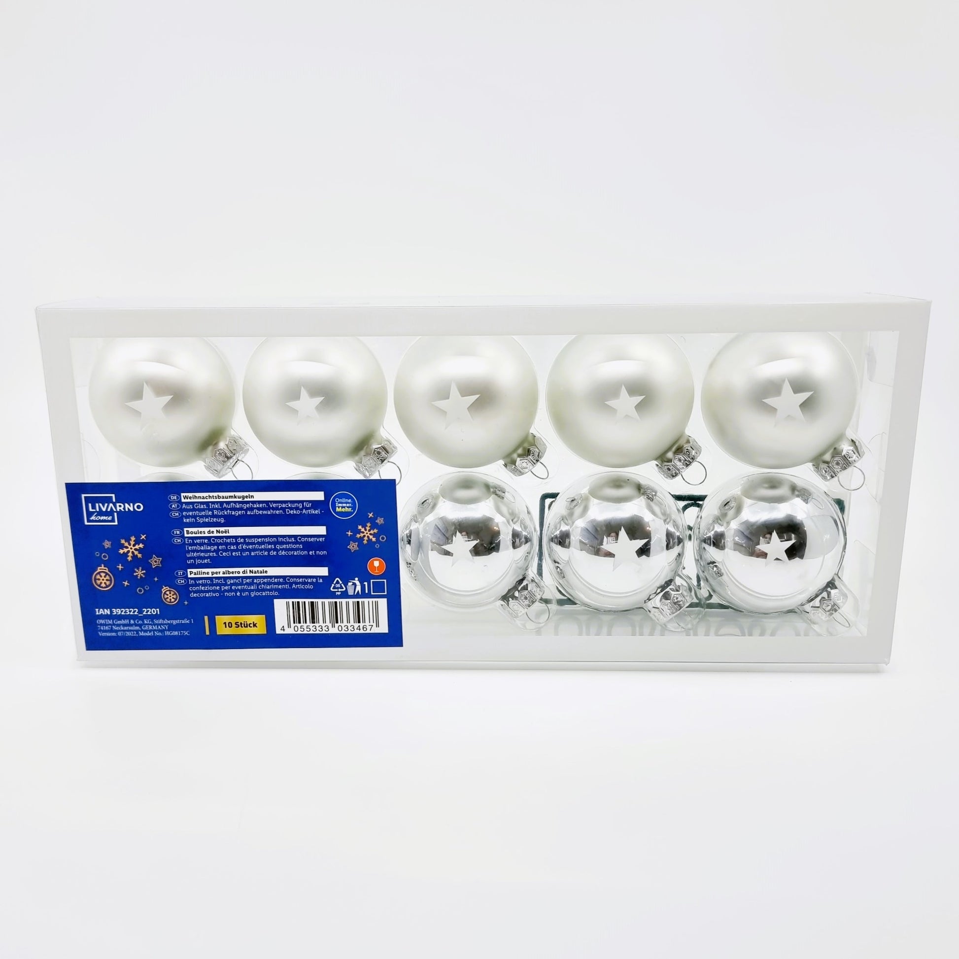 - Contient : 10 boules de Noël en verre avec crochet de suspension