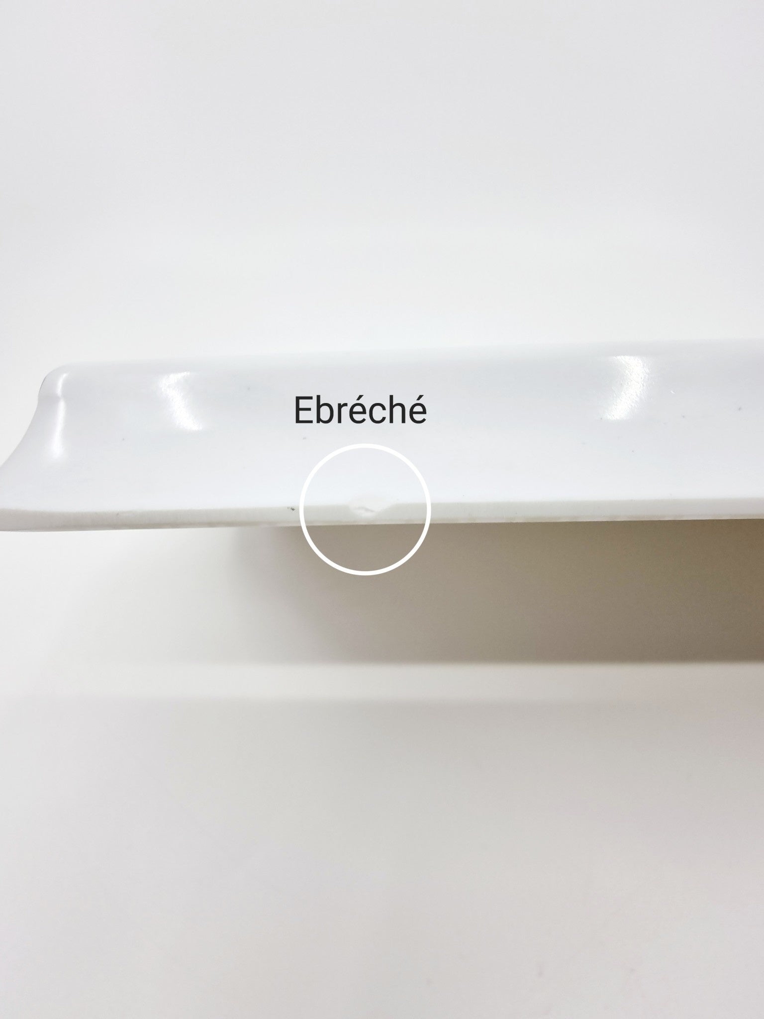 Le plateau contient un petite ébréchure sur le dessous du plateau. Ne pose pas de problème à son utilisation.