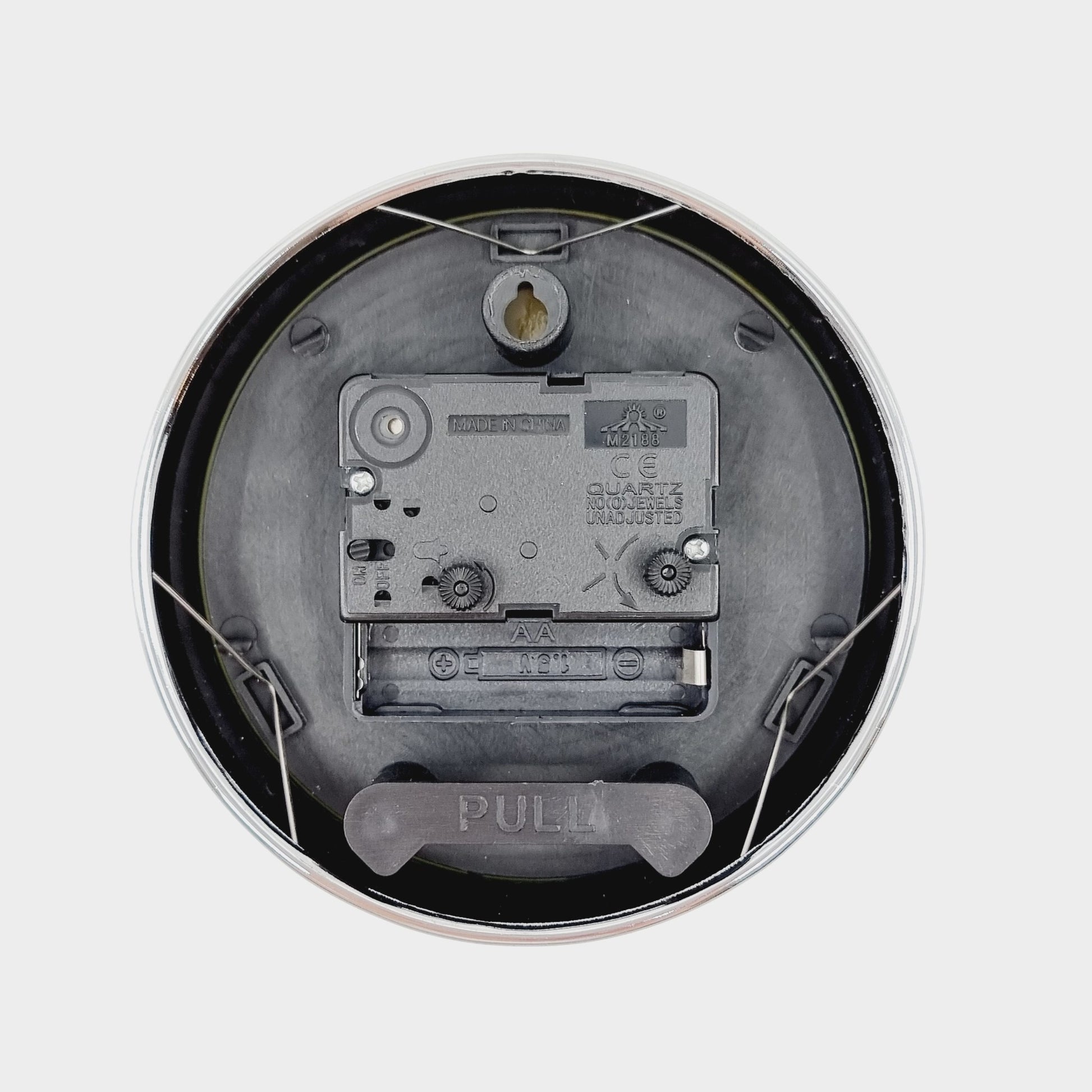- L'horloge peut-être suspendue ou posée sur un meuble grâce à son support à l'arrière