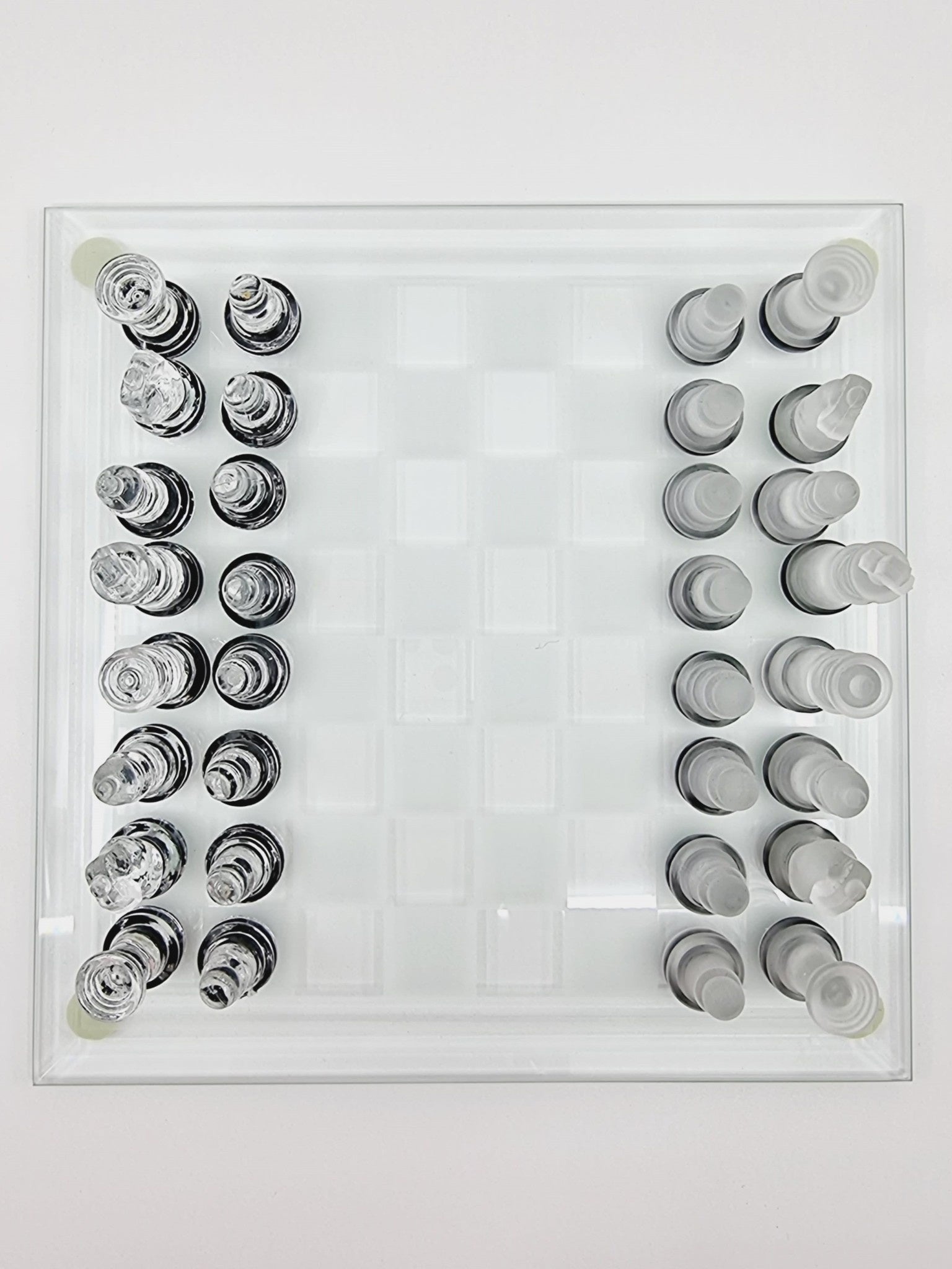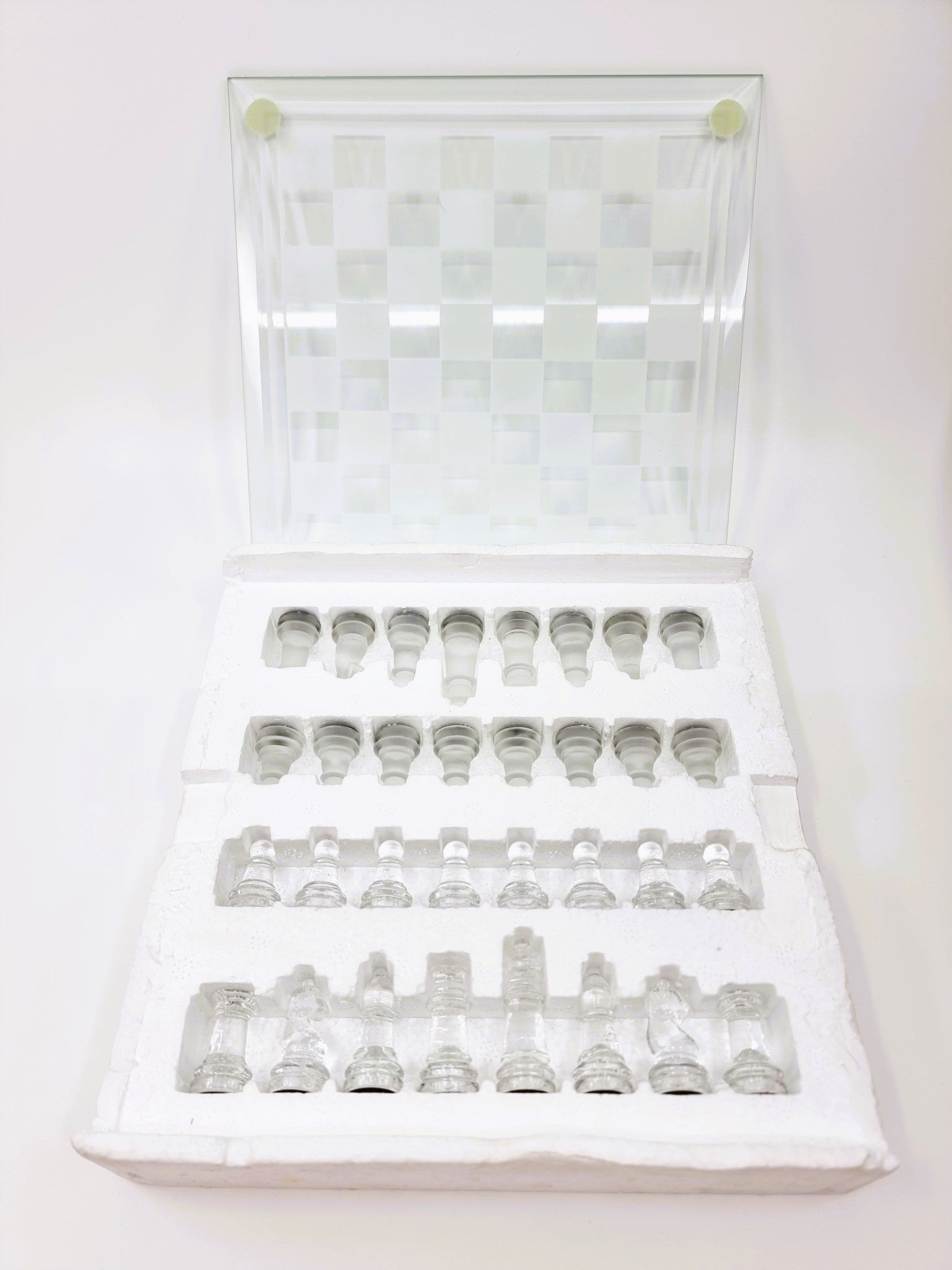 - Contient : 1 damier de 64 cases, 16 pions en verre transparent, 16 pions en verre opaque, règles du jeu