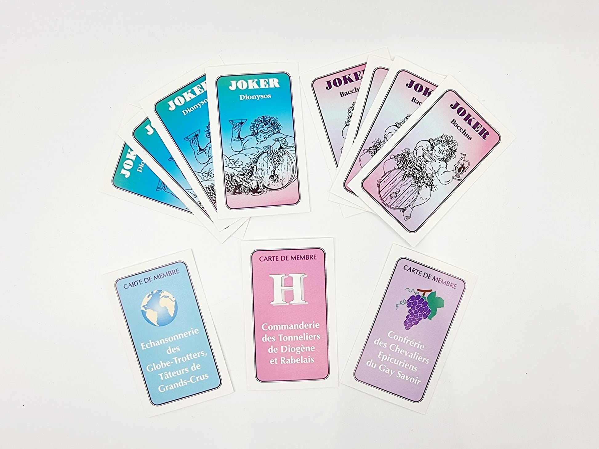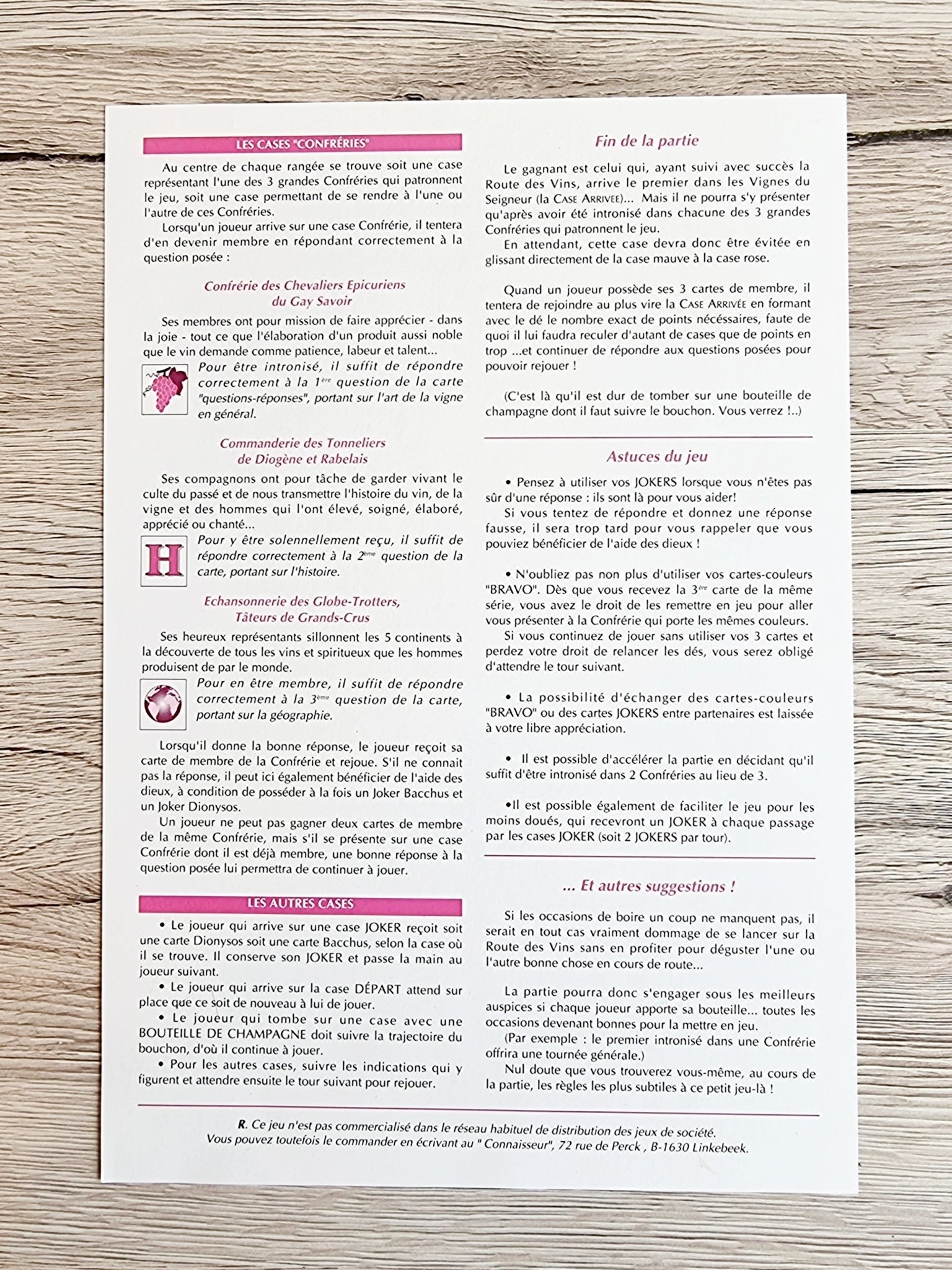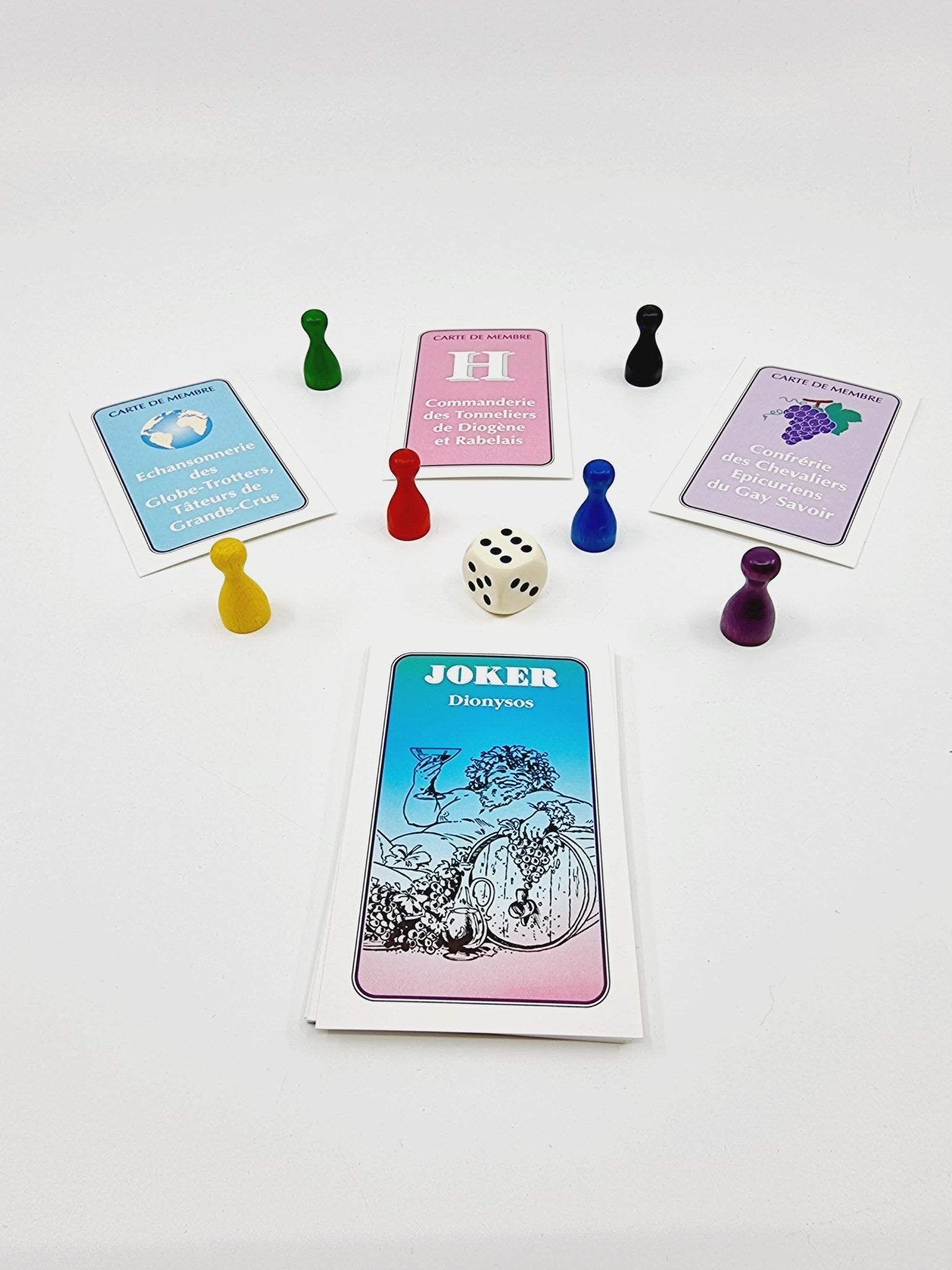 - Contient : 1 plateau, 6 pions, 1 dé, 16 cartes membre, 12 cartes joker, 54 cartes bravo, 1'000 questions sur le vin, les vignes et son histoire