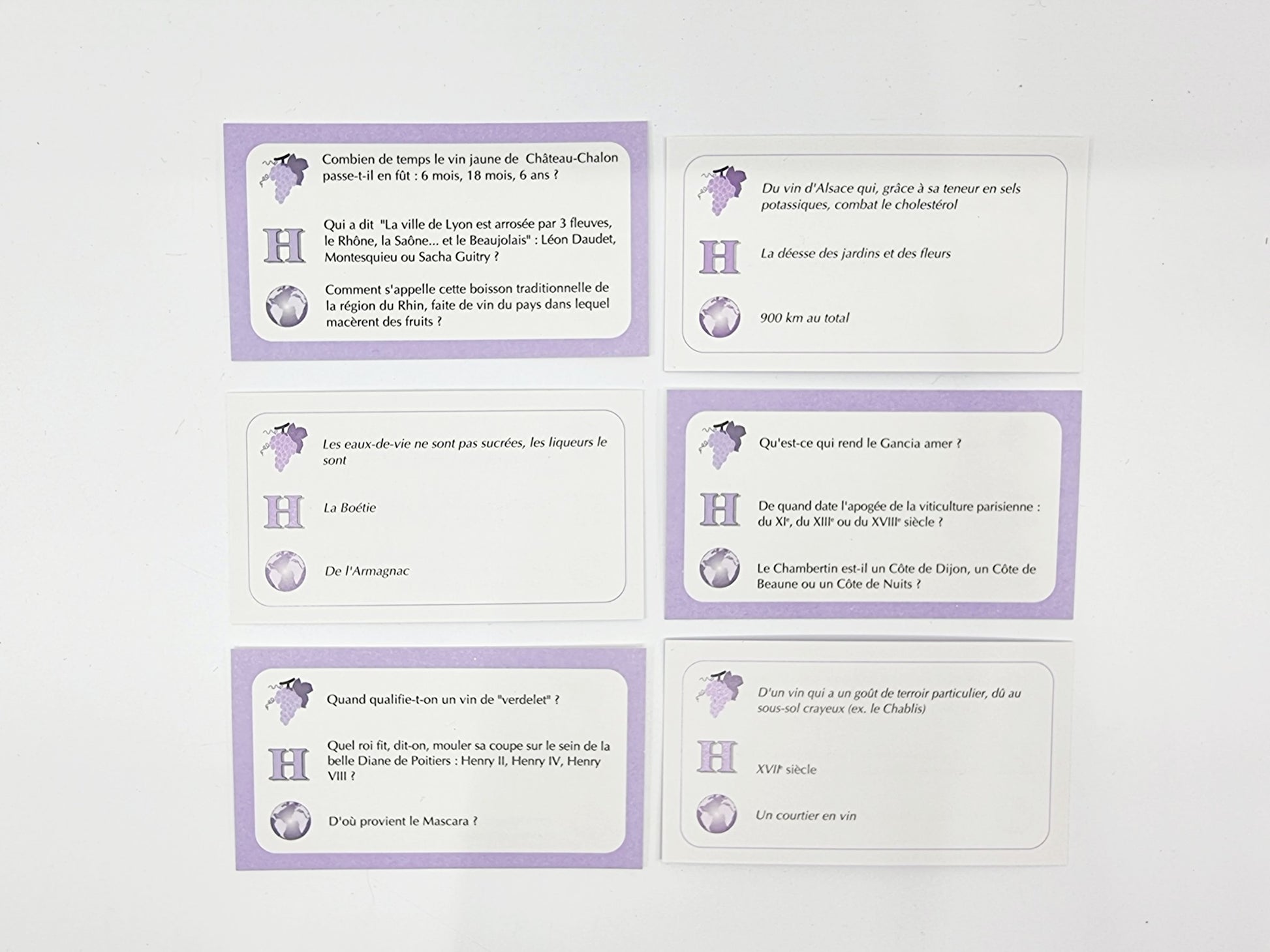 Plus vous connaîtrez de réponses, plus vite vous avancerez sur cette route des vins. Plus vous devrez aller voir les réponses au verso des cartes, plus vous augmenterez vos connaissances.