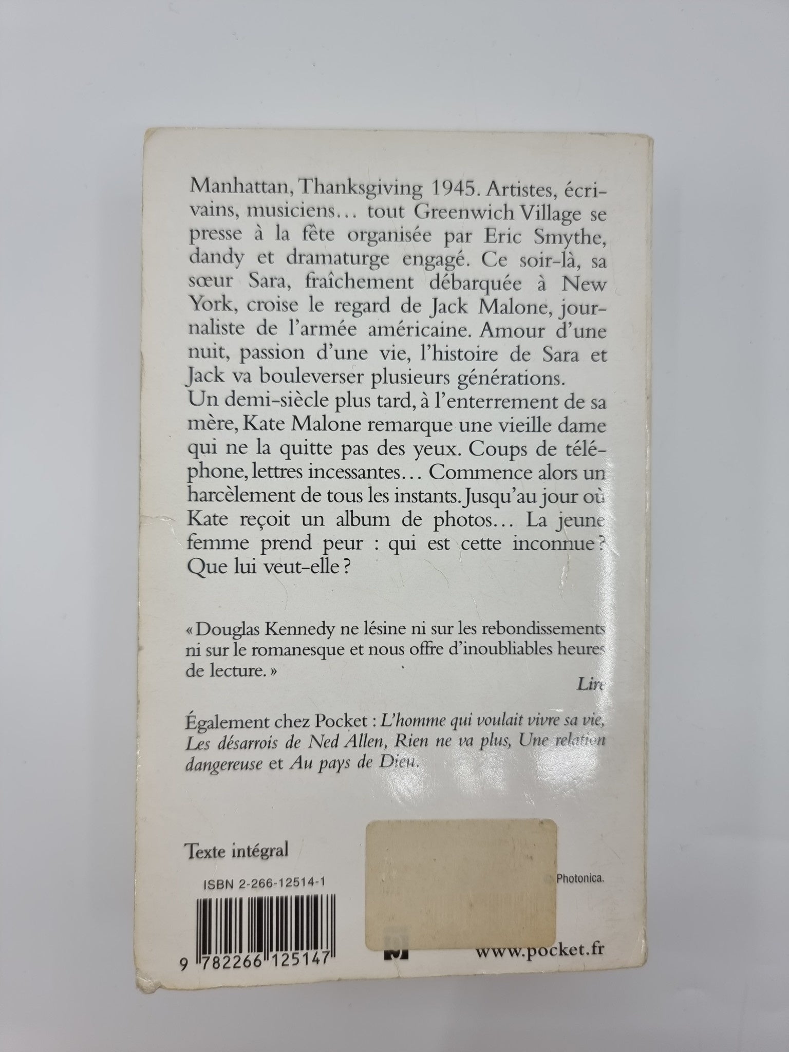 Résumé : Manhattan, Thanksgiving 1945. Artistes, écrivains, musiciens... tout Greenwich Village se presse à la fête organisée par Eric Smythe, dandy et dramaturge engagé. Ce soir-là, sa soeur Sara, fraîchement débarquée de New York, croise le regard de Jack Malone, journaliste de l'armée américaine. Amour d'une nuit, passion d'une vie, l'histoire de Sara et Jack va bouleverser plusieurs générations. Un demi-siècle plus tard, à l'enterrement de sa mère, Kate Malone remarque une vieille dame qui ne la quitte pas des yeux. Coups de téléphone, lettres incessantes... Commence alors un harcèlement de tous les instants. Jusqu'au jour où Kate reçoit un album de photos... La jeune femme prend peur : qui est cette inconnue ? Que lui veut-elle ?