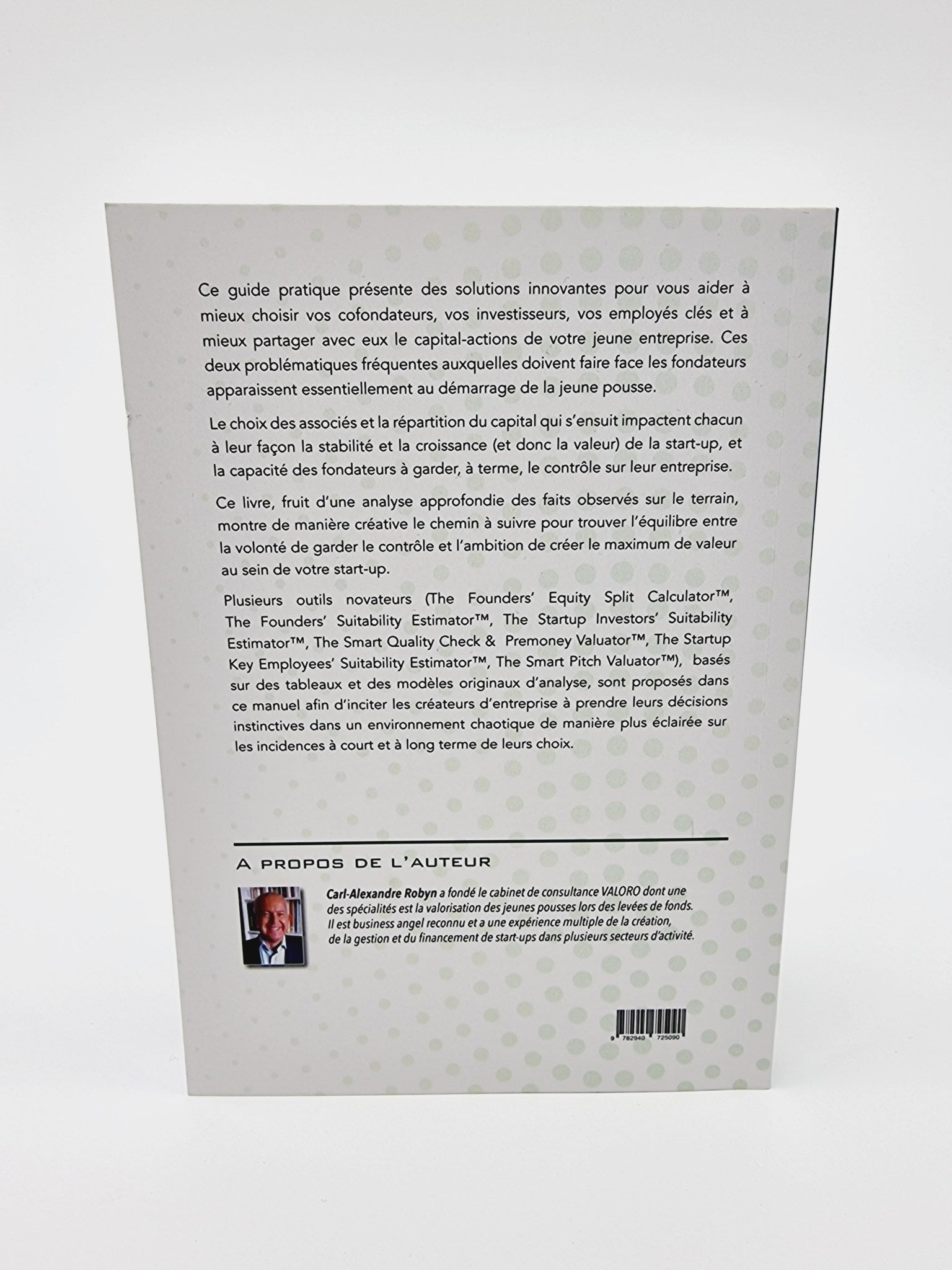 Plusieurs outils novateurs (The Founders' Equity Split CalculatorT, The Founders' Suitability EstimatorT, The Startup Investors' Suitability EstimatorT, The Smart Quality Check & Premoney ValuatorT, The Startup Key Employees' Suitability EstimatorT, The Smart Pitch ValuatorT), basés sur des tableaux et des modèles originaux d'analyse, sont proposés dans ce manuel afin d'inciter les créateurs d'entreprise à prendre leurs décisions instinctives dans un environnement chaotique de manière plus éclairée sur les incidences à court et à long terme de leurs choix.