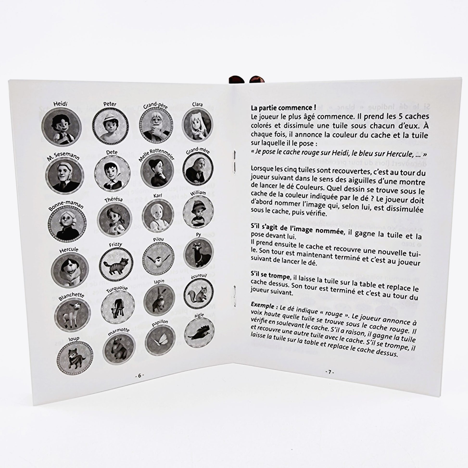 - Contient : 24 cartes, 5 caches colorés, 1 dé de couleur, règles du jeu