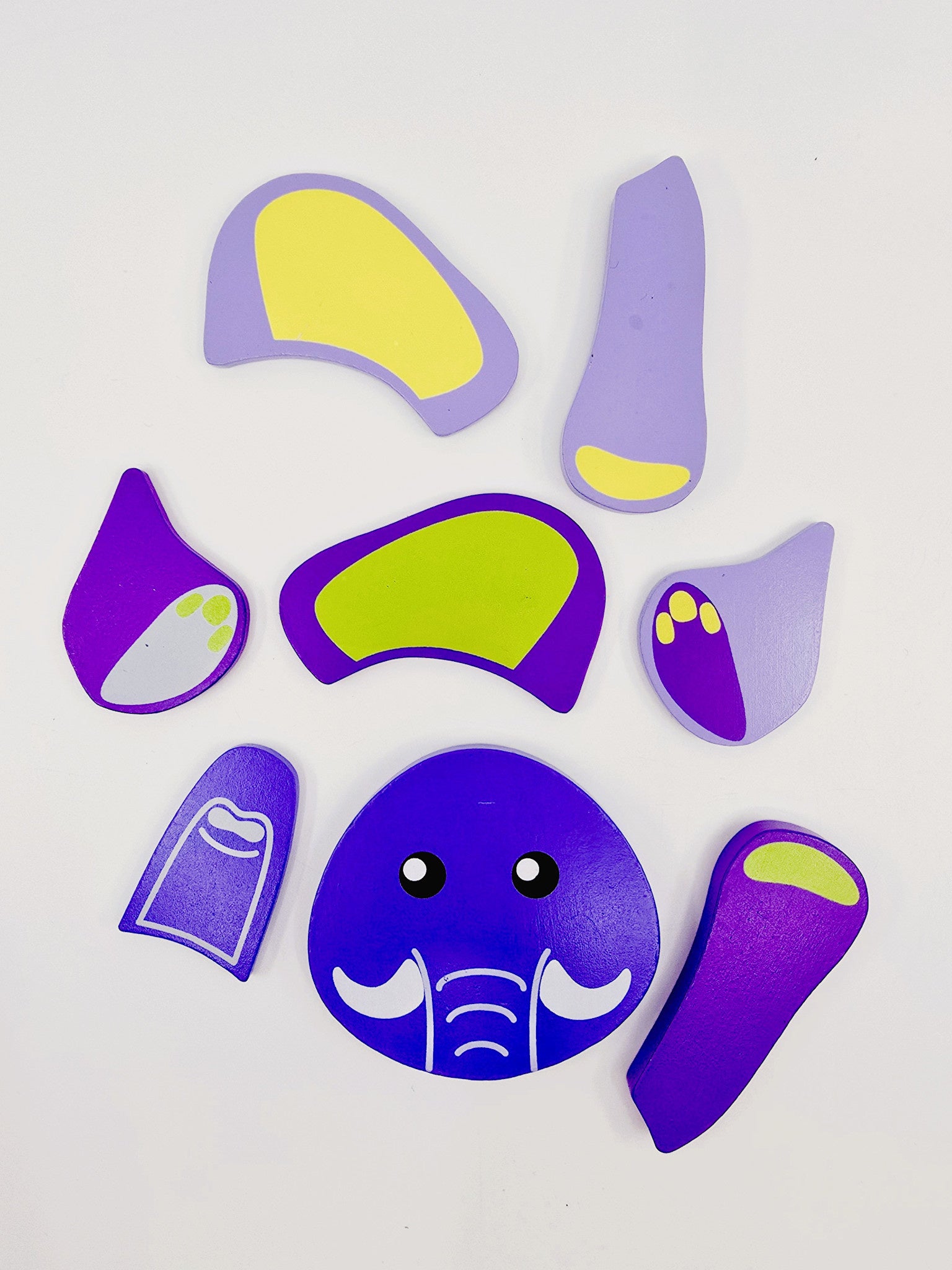 Un adorable éléphant violet attend d’être reconstitué ! Ce puzzle en bois coloré est spécialement conçu pour les petites mains curieuses. Avec ses 8 pièces faciles à manipuler, il aide l’enfant à développer sa concentration, sa motricité et sa logique tout en découvrant la joie d’assembler un animal familier.