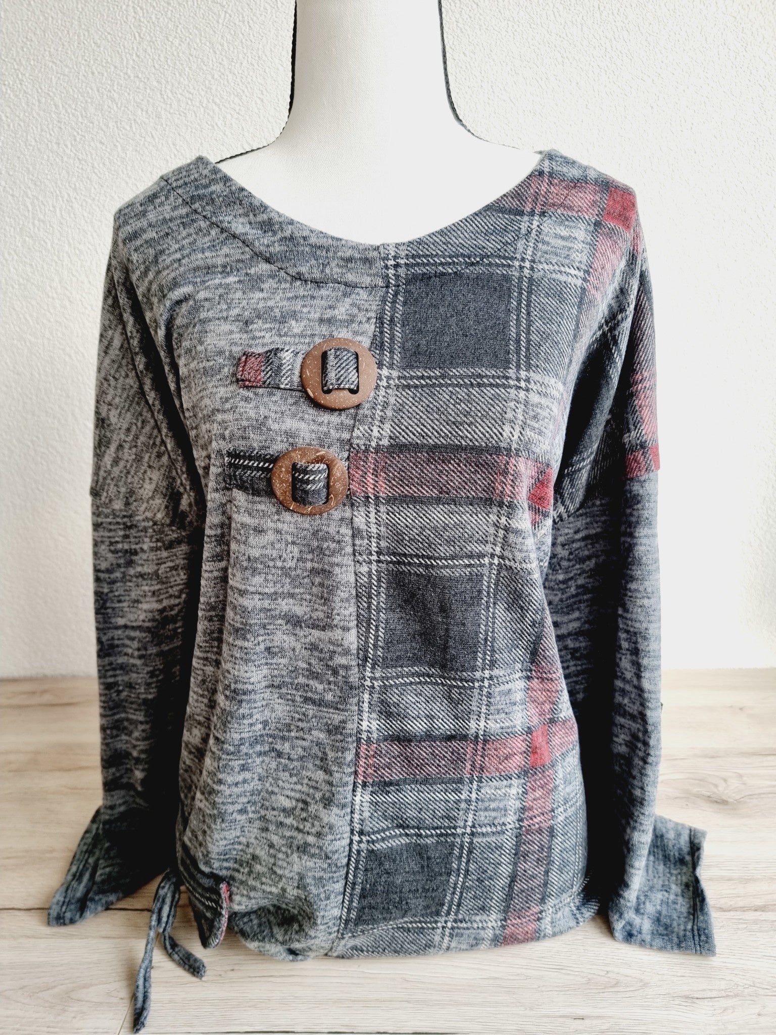 - Couleur(s) : gris chiné, bordeaux, noir