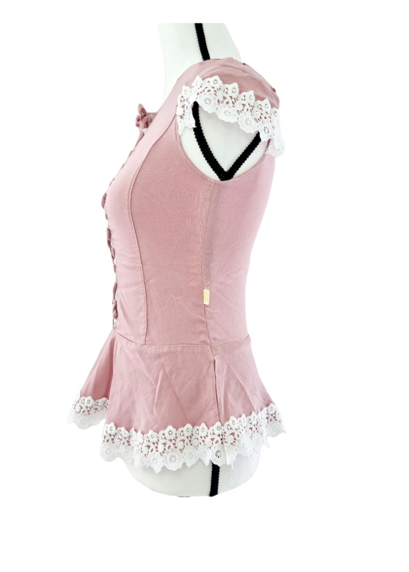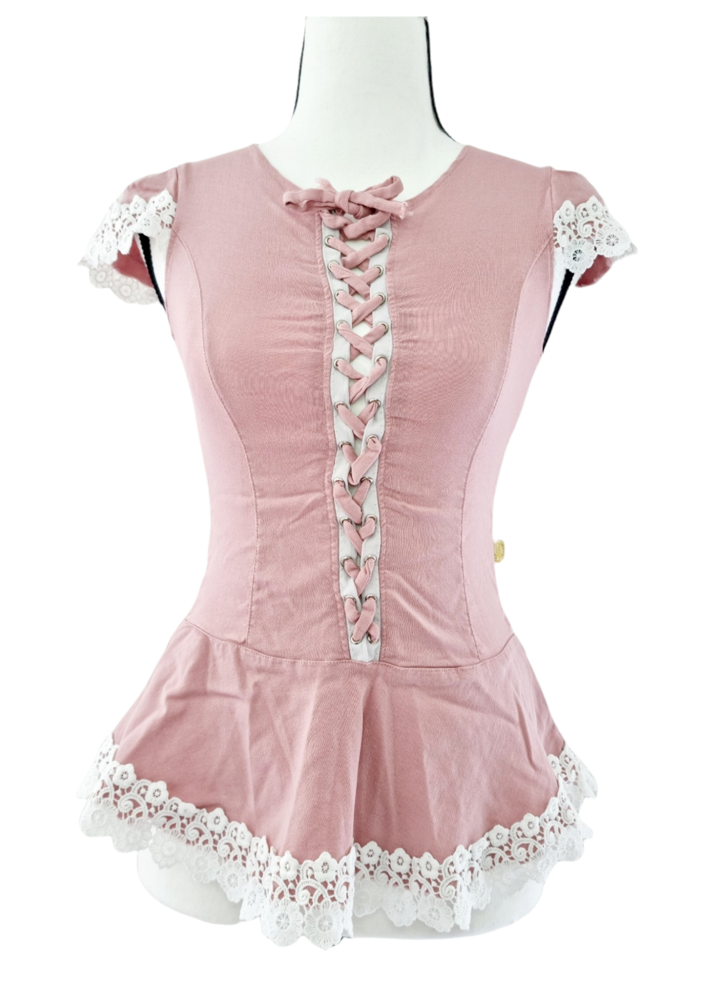- Divers : laçage croisé sur l'avant du modèle – dentelle sur les manches et en bas du t-shirt – matière élastique