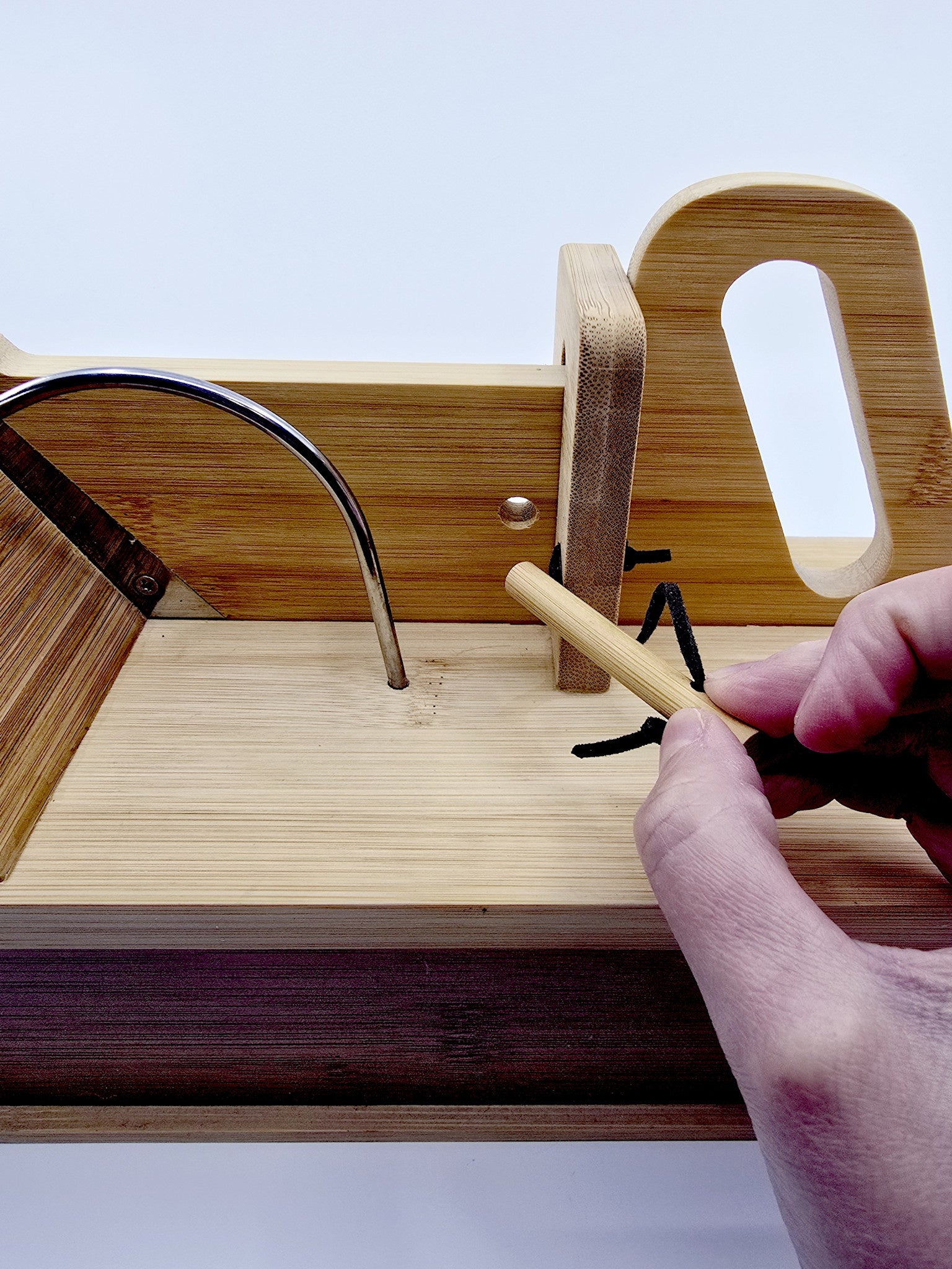 - Trancheuse manuelle en bois conçue pour couper facilement le saucisson